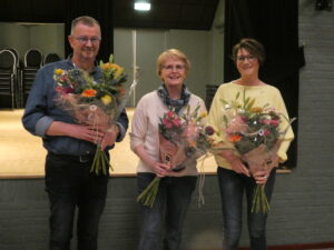 De jubilarissen Hans Blomen, Susanne Teuwen en Marianne Pouls. Alle drie zijn ze 25 jaar lid.